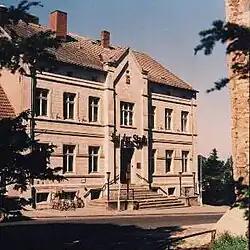 Rathaus in der Form zu DDR-Zeiten mit halbkreisförmiger Treppe