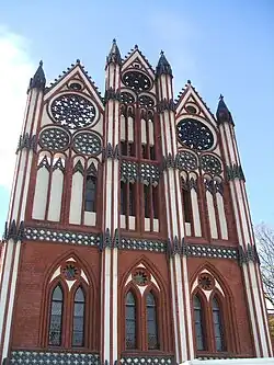 Den architektonischen Hauptakzent bildet die prachtvolle Fassade des Ostflügels, der durch polygonale Strebepfeiler mit wimpergbekrönten Nischen in drei Achsen mit schmalerem Mittelteil untergliedert wird. Die Teilung in Geschosse ist durch breite Schmuckfriese aus glasierten Formsteinen bereichert. Die Öffnungen der seitlichen Achsen sind an die mittleren Strebepfeiler herangerückt, wodurch die Vertikaltendenz des höheren Mittelteils gesteigert wird. Der dreiteilige Ziergiebel ist durch die prachtvollen, freistehenden Maßwerkrosetten geprägt, von denen jeweils zwei kleinere eine größere tragen. Die zweiachsige Südseite des Ostflügels hat eine der Hauptfassade ähnliche Gliederung, der Zinnenkranz stammt von 1846.