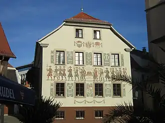 Die Wandmalerei auf der zum Rathausplatz gewandten Seite des Gebäudes wurde im Jahr 1961 von Albert Helm geschaffen und bezieht sich auf die fälschliche Bezeichnung des Anwesens als „Zunfthaus“. Heute beherbergt es die Bad Kissinger Stadtbücherei.