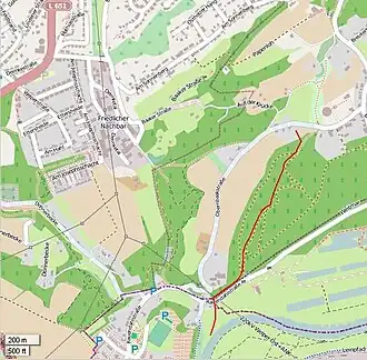 Ungefährer Verlauf der Trasse zum Ufer der Ruhr | |