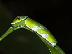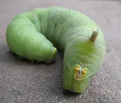 Typische morphologische Merkmale sind nachfolgend am Beispiel der Raupe des Taubenschwänzchens (Macroglossum stellatarum) dargestellt: