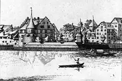 - ↑ Christine Barraud Wiener, Peter Jezler: Bauschanze und Brücke. In: Die Kunstdenkmäler des Kantons Zürich. Neue Ausgabe Band I: Die Stadt Zürich I. Stadt vor der Mauer, mittelalterliche Befestigung und Limmatraum. Gesellschaft für schweizerische Kunstgeschichte GSK, Bern 1999, ISBN 3-909164-70-6, S. 202.