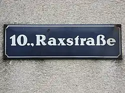 Die Raxstraße befindet sich im 10. Wiener Gemeindebezirk Favoriten im Bezirksteil Inzersdorf-Stadt. Sie wurde 1932 nach der Rax benannt, einem beliebten Ausflugsberg der Wiener.