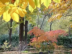 Der für die Öffentlichkeit zugängliche Teil des Gartens ist in drei Terrassen gegliedert, die die Höhenunterschiede des Geländes ausnutzen.