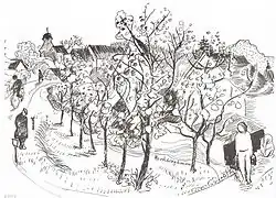 Blick auf Rechberghausen, Federzeichnung von Margret Hofheinz-Döring