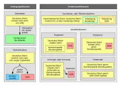 - ↑ Bernhard Diestelkamp: Rechts- und verfassungsgeschichtliche Probleme zur Frühgeschichte der Bundesrepublik Deutschland. In: Juristische Schulung 1980, S. 401–405, hier S. 402; Joachim Rückert: Die Beseitigung des Deutschen Reiches – die geschichtliche und rechtsgeschichtliche Dimension einer Schwebelage. In: Anselm Doering-Manteuffel (Hrsg.): Strukturmerkmale der deutschen Geschichte des 20. Jahrhunderts (= Schriften des Historischen Kollegs, Bd. 63), Oldenbourg, München 2006, ISBN 3-486-58057-4, S. 65–94, hier S. 66.