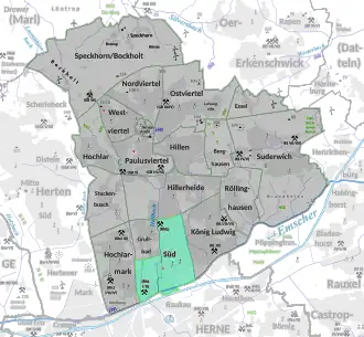 - ↑ Kartendienst der Stadt Recklinghausen mit Stadtteilgrenzen
