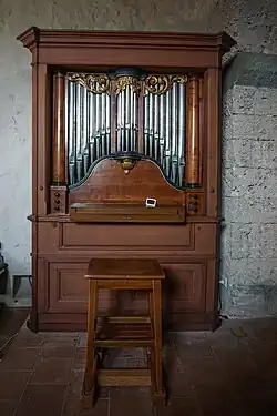 Die kleine Orgel aus dem 19. Jahrhundert mit einem Manual und sechs Registern hat eine mechanische Spiel- und Registertraktur. Die Windlade ist als Schleiflade ausgeführt.[2]