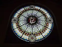 Das Chorfenster wurde 1961 nach einem Entwurf von Hans Peter Eber neu angefertigt. Es zeigt eine stilistische dunkle Erdkugel über der ein gelb-orang leuchtendes Kreuz steht. Es bezieht sich auf die Verse Joh. 8,12, Matth. 28,20, Matth. 11,28 und Joh. 16,33.