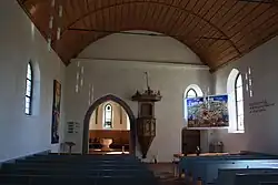Im Chor der Kirche finden sich Wappenscheiben, die um 1500 hergestellt wurden. Diese Scheiben befinden sich im Besitz des Kantons Aargau. Die im Kirchenschiff befindlichen Wappenscheiben sind hingegen im Besitz der reformierten Kirchgemeinde und sind deutlich jünger. Zwei stammen aus der Zeit der Kirchenerweiterung von 1652, die dritte wurde vom Aargauer Künstler Felix Hoffmann geschaffen und aus Anlass der Innenrenovation von 1952 eingesetzt.