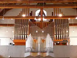 Eine erste Orgel erhielt die Kirche 1899. Das pneumatische Instrument von Carl Theodor Kuhn[15] befand sich im Chor der Kirche. 1970 wurde die heutige grosse Orgel auf der Empore eingebaut. Die Firma Manufacture d’Orgues Muhleisen aus Strasbourg schuf das Instrument. Es ist im Gegensatz zu manchen anderen Orgeln der Region nicht dem norddeutschen, sondern dem elsässisch-französischen Stil verpflichtet. Sie verfügt über 36 klingende Register auf drei Manualen und Pedal. Das gesamte Werk enthält ca. 2500 Pfeifen. Die Registratur und die Spieltraktur sind elektrisch.[16] Die Disposition lautet wie folgt: