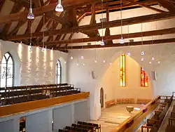 Von 1968 bis 1970 wurde die Kirche renoviert. Hierbei entfernte man die Kanzel und die Malereien von 1924. Die Emporen wurden durch die heutigen Einbauten aus Sichtbeton ersetzt und im Kirchenschiff die Decke entfernt, sodass der Dachstuhl aus dem 17. Jahrhundert sichtbar wurde. 1970 wurden die Glasfenster im Chor eingebaut.[12] Im Chor befindet sich ein «Taufbaum», der vom Künstler Andreas Widmer erstellt wurde. Seine Gestaltung nimmt das Baum-Element der Kirchenfenster und des gotischen Masswerks auf.[13]