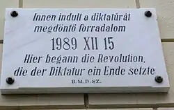 Die Predigten des Pfarrers der Kirche, László Tőkés, in denen er kaum verhohlene Kritik an den Zuständen in Rumänien übte, waren im Dezember 1989 der Funke der Rumänischen Revolution, der letztendlich auf das gesamte Land übersprang. Eine Tafel am Giebel des Gebäudes erinnert mit Inschriften in vier Sprachen an diese Ereignisse.
