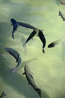 - ↑ a b c d András Woynarovich, György Hoitsy und Thomas Moth-Poulsen: Small Scale Rainbowtrout Farming, FAO Fisheries and Aquaculture Technical Paper, 561 (engl.), Rom, 2011