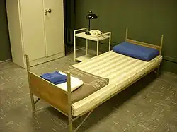 Schlafzimmereinrichtung des Bundeskanzlers. Das Schlafzimmer selbst befand sich in einem mittlerweile nicht mehr zugänglichen Teil des Bunkers.