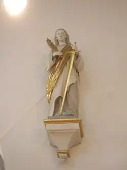 Die heilige Regina ist die Schutzpatronin der Zimmerleute und wird gegen Krätze, Räude und andere Krankheiten angerufen. Dargestellt wird die hl. Regina als Jungfrau, von weidenden Schafen umgeben, mit einem Kreuz, auf dem eine Taube sitzt, und den Attributen des Martyriums – der Krone, dem Schwert, einem Kessel oder in Flammen. Ihr Gedenktag ist der 7. September.