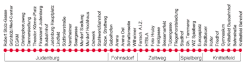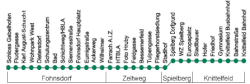 Der Großteil des Fahrtnetzes wird von zwei Linien versorgt, wodurch auf den meisten Strecken ein 15-Minuten-Takt besteht, zu Spitzenzeiten, beispielsweise morgens oder zum Schichtwechsel, gibt es zusätzliche Verbindungen.