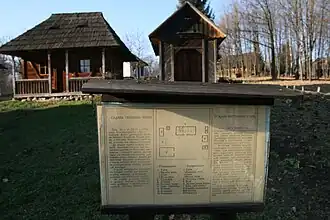 Auf dem Freigelände befinden sich 35 Gebäude. Sie sind typische Beispiele der Volksarchitektur von der zweiten Hälfte des 17. bis zur ersten Hälfte des 20. Jahrhunderts. Dazu zählen u. a. Wohn- und Geschäftshäuser, Scheunen, Ställe, Hühnerställe, Scheunen, Industrie- und öffentliche Gebäude, Mühlen, Schmieden, ein Gasthaus, ein Rathaus und eine Kirche mit Glockenturm. Die Baudenkmäler sind mit zeitlich passendem Inventar eingerichtet.