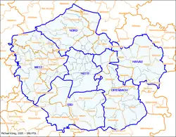 - Einen Bezirk Hanau (mit Städten wie Hanau, Bruchköbel, Mühlheim) enthielt nur die Gebietsvariante B.3.