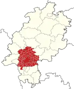 Der Regionalverband FrankfurtRheinMain ist die organisatorische Ebene des Ballungsraums Frankfurt/Rhein-Main. Sein Zweck ist es, eine geordnete Entwicklung von Frankfurt am Main und seinen Nachbarkommunen sicherzustellen. Da die Umlandgemeinden von Frankfurt auch nach der hessischen Gebietsreform von 1977 selbstständige Kommunen geblieben sind, hat die hessische Landesregierung im Jahr 2011 mit dem Regionalverband FrankfurtRheinMain eine Körperschaft des öffentlichen Rechts geschaffen, die eine Stärkung der kommunalen Zusammenarbeit im Ballungsraum Frankfurt/Rhein-Main gewährleisten soll. Ziel ist eine geordnete und abgestimmte Entwicklung der urbanen Region.[2] Das Gebiet des Regionalverbands FrankfurtRheinMain umfasst zurzeit 80 Mitgliedskommunen, in denen knapp 2,4 Millionen Einwohner leben.[3]