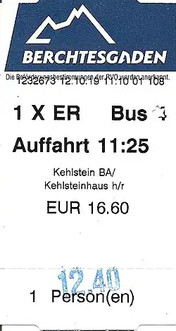 Seit 1952 bedient DB Oberbayernbus die Linie 9549 von Obersalzberg zum Kehlsteinhaus. Mit Hilfe von Spezialbussen (größere Motorleistung, veränderte Getriebe und Retarder) werden auf ihr während der Sommermonate Mai bis Oktober über 250.000 Fahrgäste befördert. Mit 1696 m ü. NHN ist der Bergparkplatz am Kehlsteinhaus die höchstgelegene Bushaltestelle Deutschlands.