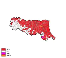 Siegreiche Parteien in den Kommunen bei den Regionalwahlen 1975 in der Emilia-Romagna