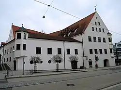 Zwischen 1543 und 1552 war Kaiser Karl V. fünfmal im Hause zu Gast. Später befand sich dort der Gasthof „Schwarzer Ochsen“ (bis 1786). Der heutige Hauptbaukörper erstreckt sich parallel zur Donau und besitzt einen Giebel nach Westen sowie einen südwestlichen Eckerker.