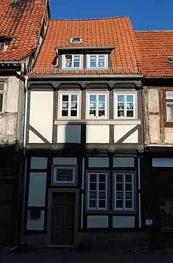Das kleine zweigeschossige Fachwerkhaus umfasst in seiner Breite lediglich vier Gebinde. Nach einer an der Stockschwelle des Hauses befindlichen Inschrift entstand das Gebäude im Jahr 1696. Darüber hinaus ist ein Monogramm CW zu lesen. Am Fachwerk finden sich Pyramidenbalkenköpfe, Fußbänder, ein Fries sowie Schiffskehlen oder Fasungen an den Schwellen. Die Haustür ist mit einem Oberlicht versehen.