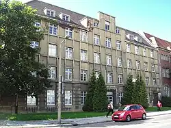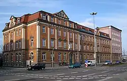 Das Hauptgebäude der Eisenbahndirektion steht an der Ernst-Kamieth-Straße (zwischen Maybachstraße und Buddestraße) in unmittelbarer Nähe des Hauptbahnhofs und wurde 1901/1902 unter Leitung der Architekten und preußischen Baubeamten Paul Thoemer und Eduard Fürstenau errichtet.[3] Das Bauwerk umschließt mit vier Flügeln auf rechteckigem Grundriss insgesamt fünf Innenhöfe, davon einen zentralen großen und vier gleiche kleinere in den Ecken des Komplexes. Mit den Ecktürmen, dem Mittelrisalit und einem groß ausgelegten Treppenhaus ist es eines der größten historistischen Verwaltungsgebäude in Halle (Saale). Ein späterer Erweiterungsbau auf dem gegenüberliegenden Eckgrundstück für das Reichsbahnamt Halle war durch eine geschlossene Verbindungsbrücke über die Buddestraße mit dem Hauptgebäude verbunden.
