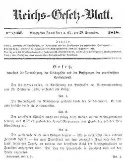 - ↑ Stenographischer Bericht über die Verhandlungen der deutschen constituirenden Nationalversammlung zu Frankfurt a. M. 69. Sitzung vom 1. September 1848 Motive für die Gründung eines Reichsgesetzblattes 1802.