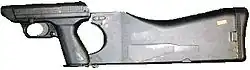 Diverse dieser Waffen sind mit einem Futteral versehen, das zum Schießen aus der Schulter als Anschlagschaft verwendet werden kann, um den Rückstoß besser zu beherrschen. Frühe Modelle dieser Waffengattung wurden meist zur Erhöhung der Feuerkraft aus Selbstladepistolen weiterentwickelt, als Beispiel können die österreichische Steyr M12/P16 und die Mauser M712 gelten. Maschinenpistolen haben meist einen festen oder einschiebaren Schaft.