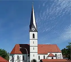 Die katholische Pfarrkirche St. Martin ist ein spätgotisches Bauwerk, dessen Langhaus aus dem 14. und dessen Presbyterium aus dem 15. Jahrhundert stammt. Der alte Turm musste 1865 wegen Einsturzgefahr abgebrochen werden. 1899 wurde die Kirche nach Westen hin um etwa ein Drittel verlängert, dabei erhielt sie auch ihren 52 Meter hohen Turm. Ihre Ausstattung ist barock, der Hochaltar (um 1680) zeigt im 1840 erneuerten Altarblatt den Bischof und Kirchenpatron St. Martin von Tours unter Armen.
