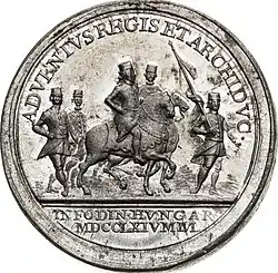 Diese von April bis Juni dauernde Reise galt primär Kroatien und Slawonien, die damals Nebenländer Ungarns waren, und dem vom Kommerzienrat verwalteten Küstenland (italienisch Litorale).[41] Gemäß Josephs Vorschlägen wurde dann der Freihafen Rijeka (Fiume) den Ungarischen Erbländern angegliedert, jener von Triest den Österreichischen. Nach Venedig nahm Joseph diesmal seine Brüder Leopold, Ferdinand und Max Franz mit. Während des abschließenden Aufenthalts in Florenz verbrachte er längere Zeit in der Villa del Poggio Imperiale, wo er Spiele für Leopolds Kinder erfand.[42]