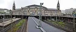 Der zwischen 1903 und 1906 erbaute Hamburger Hauptbahnhof gehört zu diesem Typ Bahnhof,[3] auch wenn die Gleisanlage durch eine große gemeinsame Bahnhofshalle gedeckt ist und sich zusammen mit weiteren baulichen Anlagen[4] von der Straßenebene aus der Eindruck eines Kopfbahnhofs ergibt.