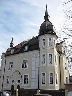 Das Wohnhaus im Stil der Neurenaissance wurde nach Plänen des Architekten Conrad Klinger erbaut, der auch der Bauherr war. Das zweigeschossige Haus mit Dachausbau besitzt einen Erkerturm mit Zwiebelhaube. Vor dem Bau des evangelischen Gemeindehauses mit Kindergarten und Wohnungen grenzte das Doppelhaus an die Himmelfahrtskirche. Die Treppenhäuser befinden sich in der Hausmitte beiderseits der Brandmauer. Auf jedem Stockwerk gibt es eine Wohnung mit Mittelkorridor.