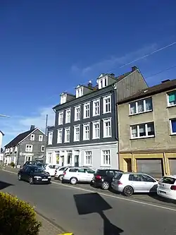 Das Haus wurde um die Wende zum 20. Jahrhundert (vor 1906) im Auftrag des späteren Eigentümers Isaac Tillmanns errichtet. Es wurde beim Luftangriff auf Ronsdorf nicht zerstört und ragt im Gegensatz zu den eher gedrungen wirkenden Nachbargebäuden hoch auf und wurde auf einem älteren, aus Sandstein und mit Kappendecke errichteten Kellergewölbe in Fachwerkbauweise erstellt. Es besitzt drei Vollgeschosse mit sechs Fensterachsen (in den oberen beiden Etagen), deren Fenster mit klassizistische Sturzgesimsen versehen sind. Das ausgebaute Dachgeschoss unter dem Satteldach mit Traufgesims besitzt zur Straße hin drei traufständig ausgerichteten Dachgauben. Aufgrund der Anbauten besitzt das Haus keinen symmetrischen Grundriss. Der straßenseitig linke, nördliche Anbau besitzt eine Achse und erhebt sich über zwei Etagen, wobei die obere verschiefert ist und ein Flachdach bzw. ein nur sehr leicht geneigtes Pultdach besitzt. Hofseitig schließt sich ein weiterer schmaler Anbau an, der mit Sichtbrettern verkleidet ist. Ein dritter Anbau an der rückwärtigen Seite besitzt einen rechtwinkligen Grundriss. Er verfügt über zwei überwiegend verschieferte Vollgeschosse mit leicht geneigtem Flachdach und wird bewohnt. Das Haupthaus ist bis auf die Straßenfassade im Erdgeschoss, die mit kannelierten und hellgrau lackierten Brettern verkleidet ist und der südlichen Giebelwand, an die ein Wohnhaus aus der Nachkriegszeit angebaut wurde, gänzlich verschiefert. Die Eingänge besitzen stilisierte/optisch angedeutende Säulen mit Basis, Kapitellen und Architrav. Beiderseits des mittigen Eingangs befanden sich ursprünglich Ladengeschäfte. Während das Geschäft rechts des Eingangs schon vor 1939 in eine Wohnung umgewandelt wurde, befand sich links (im nördlichen Teil des Hauses) ein italienisches Restaurant, dass aus Platzgründen in das Nachbarhaus „Remscheider Straße 33“ umzog. Heute befindet sich in diesen Räumlichkeiten ein Einzelhandelsgeschäft.