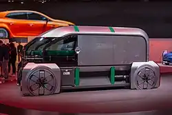 Der Renault EZ-GO ist ein hochautomatisiertes Robo- bzw. Roboter-Taxi, das von einem Elektromotor angetrieben wird. Es kann von seiner Konzeption her nur autonom steuern. Einen Platz für einen Fahrer sowie ein Lenkrad oder Instrumente gibt es nicht.[1] Der Autonomie-Level liegt gemäß der Norm SAE J3016 bei 4 von 5.[2] Vorgestellt wurde es auf dem 88. Genfer Auto-Salon 2018. Renault selbst bezeichnet es als „barrierefrei, urban, praktisch“.[3]