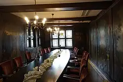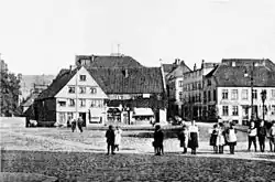 Nach der Machtergreifung Hitlers errang die NSDAP in Rendsburg bei den Wahlen am 12. März 1933 zur Stadtverordnetenversammlung bereits die absolute Mehrheit.[24] Mit Zustimmung des Landrats Wilhelm Hamkens schlossen der NSDAP-Ortsgruppenleiter Franz Krabbes und der 1929 gewählte Bürgermeister Heinrich de Haan im Januar 1934 eine Vereinbarung über eine einstweilige Beurlaubung und Abfindung de Haans zugunsten der Installation Krabbes' als kommissarischer, ab 1935 hauptamtlicher Bürgermeister der Stadt Rendsburg.[25] In der Folgezeit kam es auch in Rendsburg zur umfassenden Gleichschaltung von Vereinen und Verbänden. Politisch Andersdenkende und ansässige Juden wurden verfolgt. Am 1. April 1933 beteiligte sich die Ortsgruppe der NSDAP an dem Boykott jüdischer Geschäfte. Am 9. Oktober 1933 inszenierte der Kampfbund für deutsche Kultur unter Führung des Tischlermeisters Hermann Böhrnsen eine öffentliche Bücherverbrennung auf dem Paradeplatz.[26] In der Reichspogromnacht vom 9. November auf den 10. November 1938 wurde die Rendsburger Synagoge, Zentrum der jüdischen Gemeinde, durch einen Sprengsatz zum Teil schwer beschädigt.[27] 1939 folgte der Zwangsverkauf der Synagoge und der ehemaligen Thora-Schule an die nationalsozialistischen Machthaber. Lebten 1933 noch etwa 30 Juden in Rendsburg, so wurde bis 1942 die jüdische Gemeinde durch Auswanderungen, Abtauchen in die Illegalität, Deportationen und Suizid restlos aufgelöst.[28] Heute befinden sich in der ehemaligen Synagoge und Schule das Jüdische Museum Rendsburg und das Dr.-Bamberger-Haus.