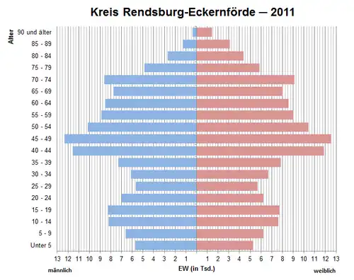 - ↑ Datenbank Zensus 2011, Kreis Rendsburg-Eckernförde, Alter + Geschlecht ( vom 22. September 2021 im Internet Archive)