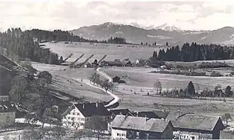 Feierliche Eröffnung war am 12. Oktober 1853, als der erste Zug auf der Strecke von Oberstaufen nach Aeschach über den Bahndamm fuhr.[6] Es folgte der Bau einer Straße von Oberhäuser nach Ellhofen etwas unterhalb der Bahnlinie am Damm. In den 1890er Jahren wurde die Bahnstrecke nach Weiler unterhalb der Straße nach Ellhofen in den Damm gebaut, die bis 1991 in Betrieb war.