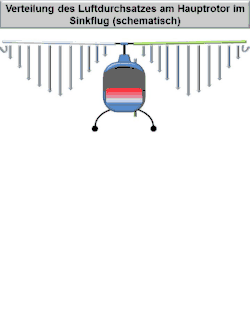 - Die horizontale relative Geschwindigkeit zur Luft ist gering (Fluggeschwindigkeit kleiner als 10 Knoten[5]:59, d. h. ca. 18,5 oder der Hubschrauber hat bei schnellem Sinkflug starken Rückenwind)