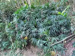 Rhapis excelsa (Steckenpalme) ist eine Pflanzenart aus der Familie der Palmengewächse (Arecaceae). Sie ist eine beliebte Zimmerpflanze.