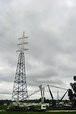 Nördlicher Mast im Vordergrund, nur noch 96 m hoch