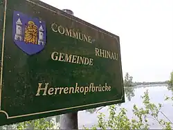 • Rhinau ist die letzte von einst vielen Gebietskörperschaften am Oberrhein, deren Gebiet sowohl deutsches wie auch französisches Staatsgebiet umfasste. Grund hierfür waren die ständigen Veränderungen im Lauf des Rheins, der vor seiner Korrektion im 19. Jahrhundert in zahlreichen Armen zwischen Inseln und Kiesbänken verlief. Dadurch hatten viele Ufergemeinden Bann- und Eigentumsrechte auf beiden Seiten des Stroms.[12] Rhinau lag vor 1398 rechts des Rheins, wechselte dann auf die linke Flussseite und war ab 1502 nochmals für einige Jahre rechtsrheinisch. Am 23. September 1542 entschied der Straßburger Bischof Erasmus einen Streit zwischen Rhinau und Kappel um den heutigen Taubergießen zugunsten Rhinaus.[13]