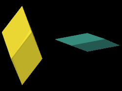 Ein Rhomboeder ist ein Polyeder, das von sechs Rauten begrenzt ist. Es ist ein Parallelepiped mit gleich langen Kanten und drei gleichen Innenwinkeln an zwei gegenüber liegenden Ecken.