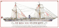 Das Passagier- und Postschiff Rhone war ein 2.378 BRT großes Dampfschiff, das bei den Millwall Ironworks auf der Isle of Dogs in London für die Royal Mail Line gebaut wurde. Das 94,5 Meter lange und 12,2 Meter breite Schiff lief am 11. Februar 1865 vom Stapel und wurde im August 1865 in Dienst gestellt. Die Rhone wurde als für den Handelsverkehr von England nach Zentral- und Südamerika und in die Karibik gebaut. Das Schiff hatte einen Schornstein, zwei Masten und einen einzelnen Propeller. Der Propeller war erst der zweite, der aus Bronze gegossen war. Die Rhone war eines der ersten Schiffe, die aus Eisen gebaut waren. Sie wurde sowohl von einer Dampfmaschine als auch mit Segelkraft angetrieben.