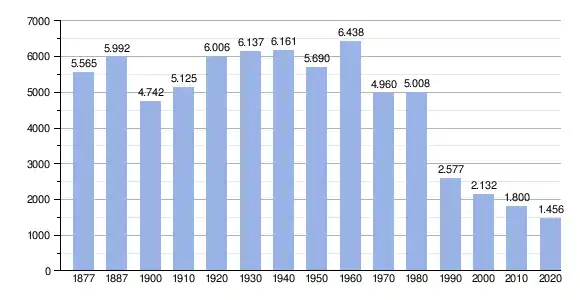 Durch Fortzug in die umliegenden Städte ist die Bevölkerung seit den 1950er Jahren stetig gesunken.