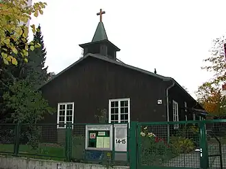 Die mit einem flachen Satteldach und einem kleinen Glockenturm ausgestattete Holzkirche wurde für etwa 400 Besucher gebaut. Sie sollte in den 1990er Jahren durch einen Neubau ersetzt werden, wurde dann aber unter Denkmalschutz gestellt.