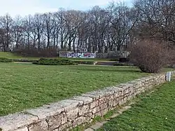 Teile der Parkanlage und die Denkmalfundamente wurden in den 1950er Jahren beseitigt. Die Trockenmauer, die Säulen der ehemaligen Gartenhalle sowie die westliche Blumenterrasse mit dem Wasserbecken und der Pergola sind bis heute erhalten; letztere wurde 1992 erneuert.