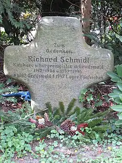 - Jürgen Stübs: Schmidt, Richard. In: Der Alte Friedhof. Greifswald (2004), S. 45. ISBN 3-00-014790-X